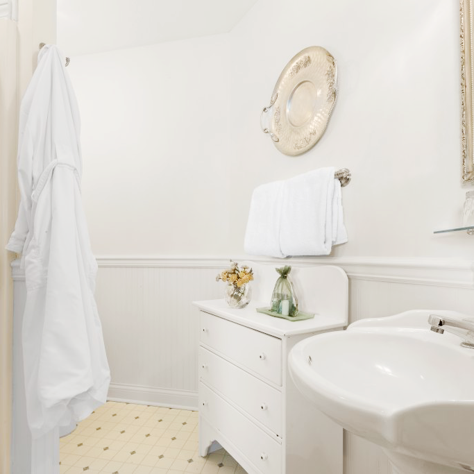 Lots of tranquil white and pale green along with wicker furniture give this room a quiet, crisp feel. We have accented it with a collection of hammered aluminum trays. After a walk on the beach, make a roaring fire in our fire pit, located on the patio, then head to your room and sip champagne on your private balcony.